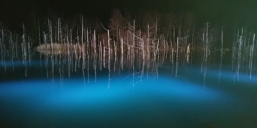 ライトアップを撮影に来ましたが、あいにく曇りで緑の池になりました?さらに夜に来たらその都度駐車場料金が500円取られるとのこと!