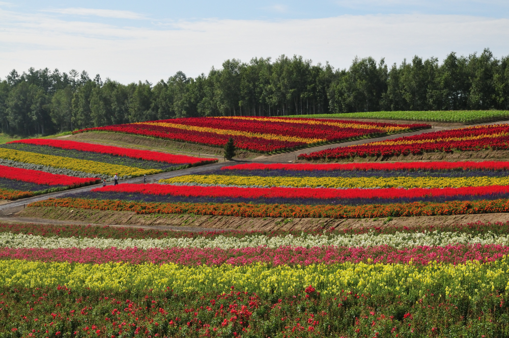 鮮やかなお花の絨毯が見事です。夏の北海道を楽しめます。